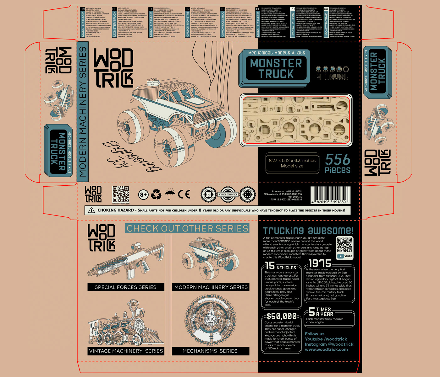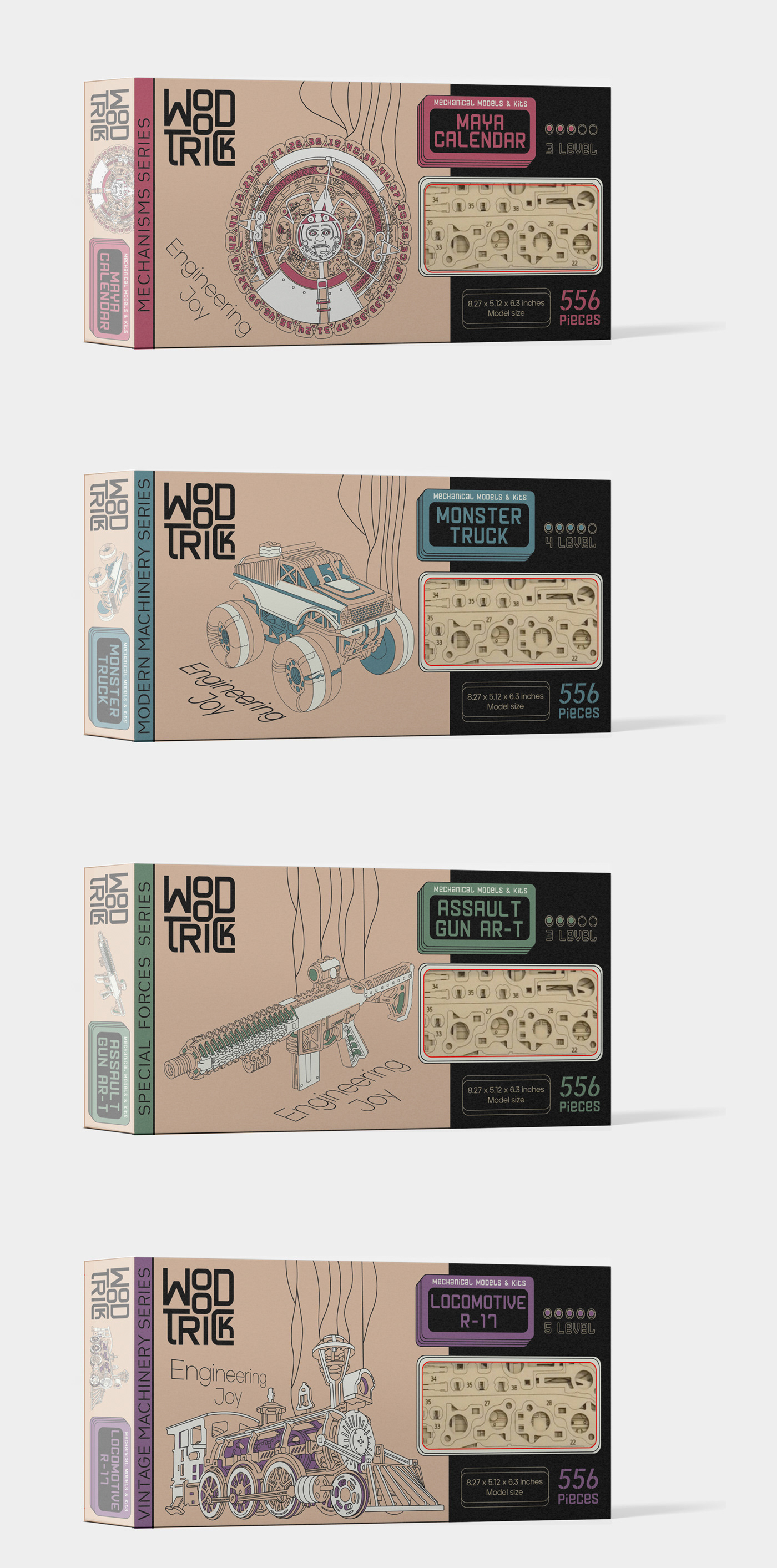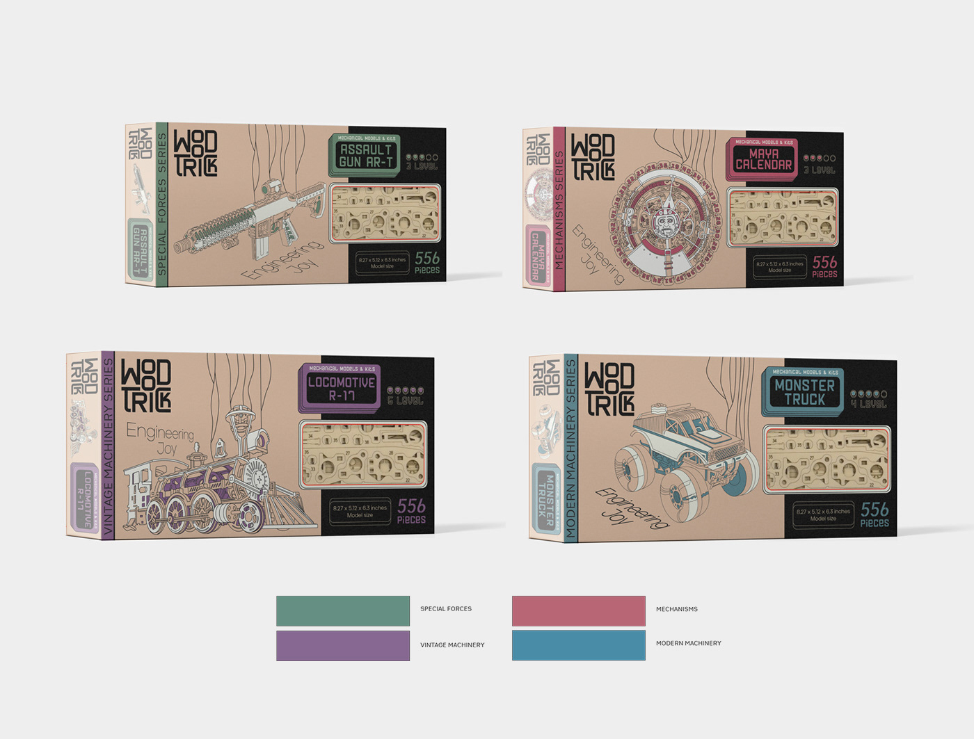 WoodTrick is the constructors made of natural wood that give your true engineering joy. We created a visual identity and package for the brand.