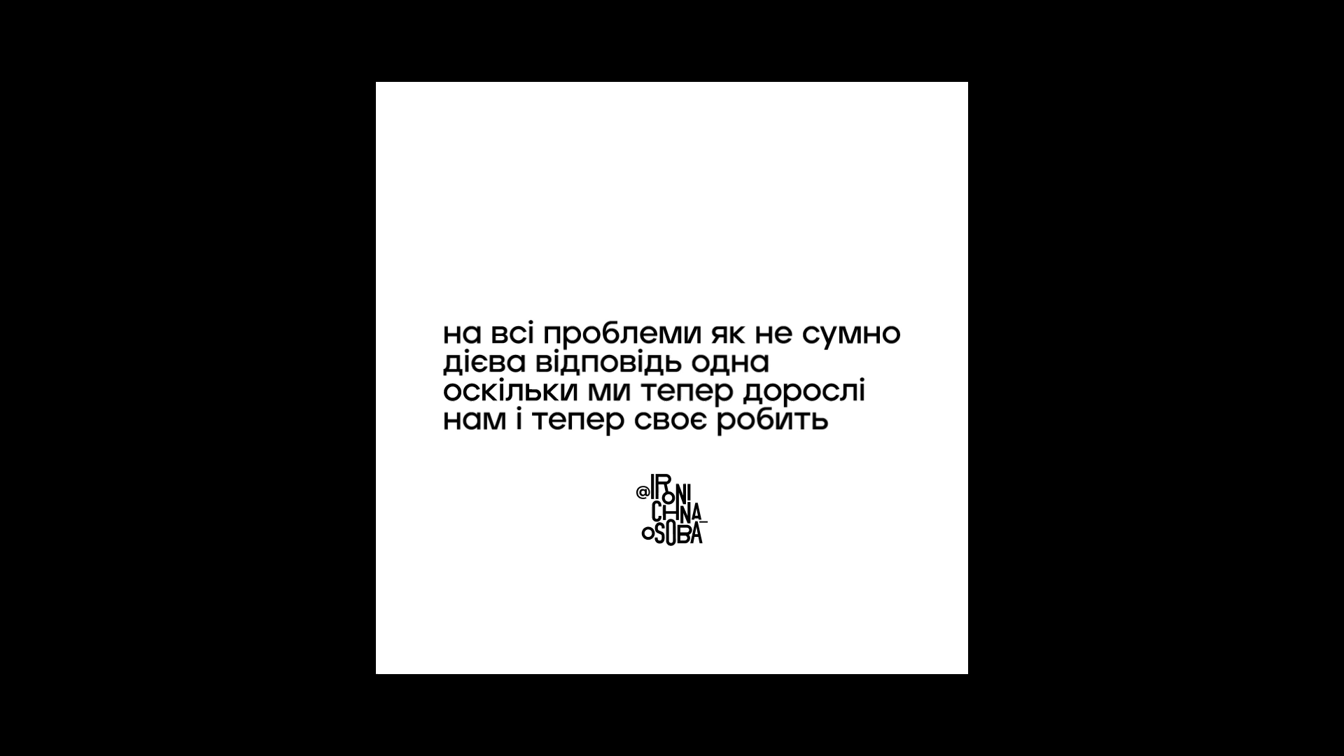 Ironichna osoba — the author of short, ironic, and sensitive poems called “pyrozhky.” She shares her poetry on Instagram, giving voice to the meanings and feelings we all experience but often don’t know how to express.